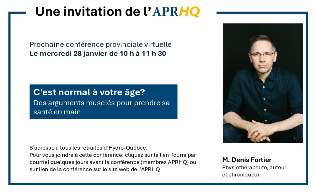 Prochaine conférence virtuelle offerte par l'APRHQ et exceptionnellement offerte à tous les retraités d'Hydro-Québec : « C'est normal à votre…