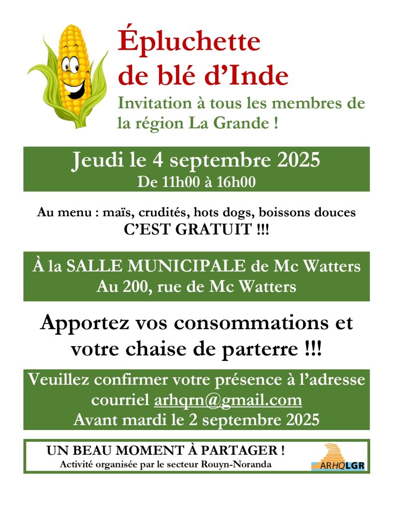Épluchette de blé d’Inde – Mc Watters 4 septembre 2025
